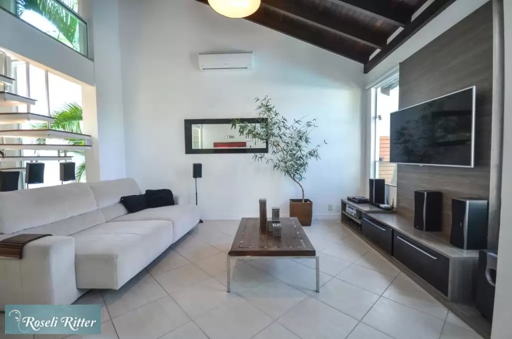 TV por assinatura na sala, na suíte máster e na suíte do térreo;